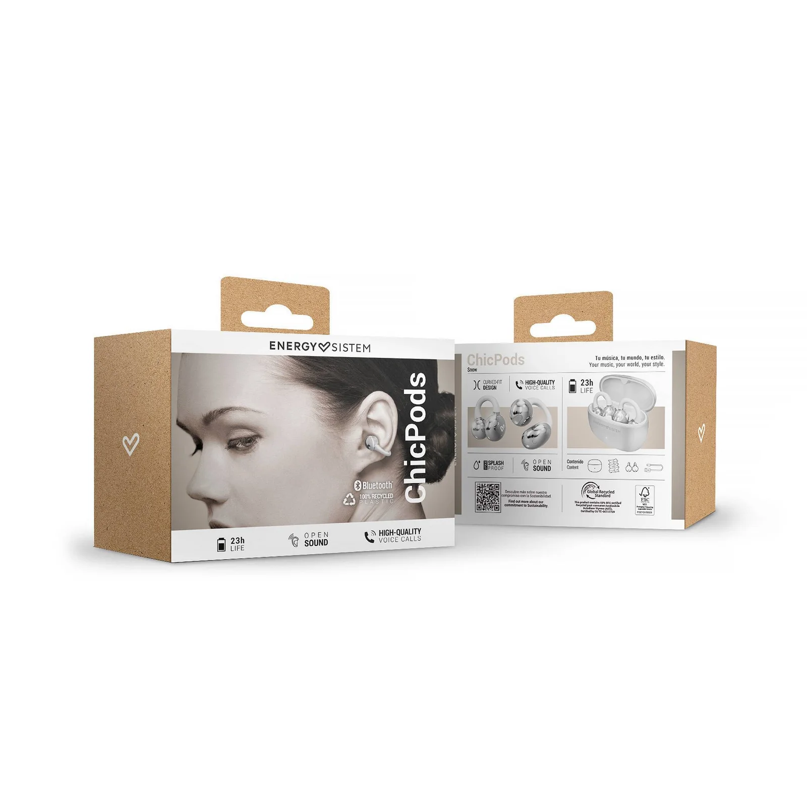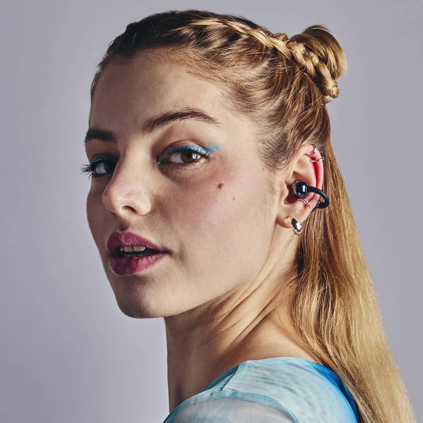 Designer earphones with Open Sound technology for a sound experience that won't isolate you from the world around you. With Bluetooth 5.4 and True Wireless Stereo, play your music wirelessly for 23 hours or answer your calls with the clearest voice thanks to the microphone's ambient noise cancellation (ENC). IPX4-certified water resistance and a Curved-Fit system ensure a comfortable fit. Now you can wear your music in the most chic way.