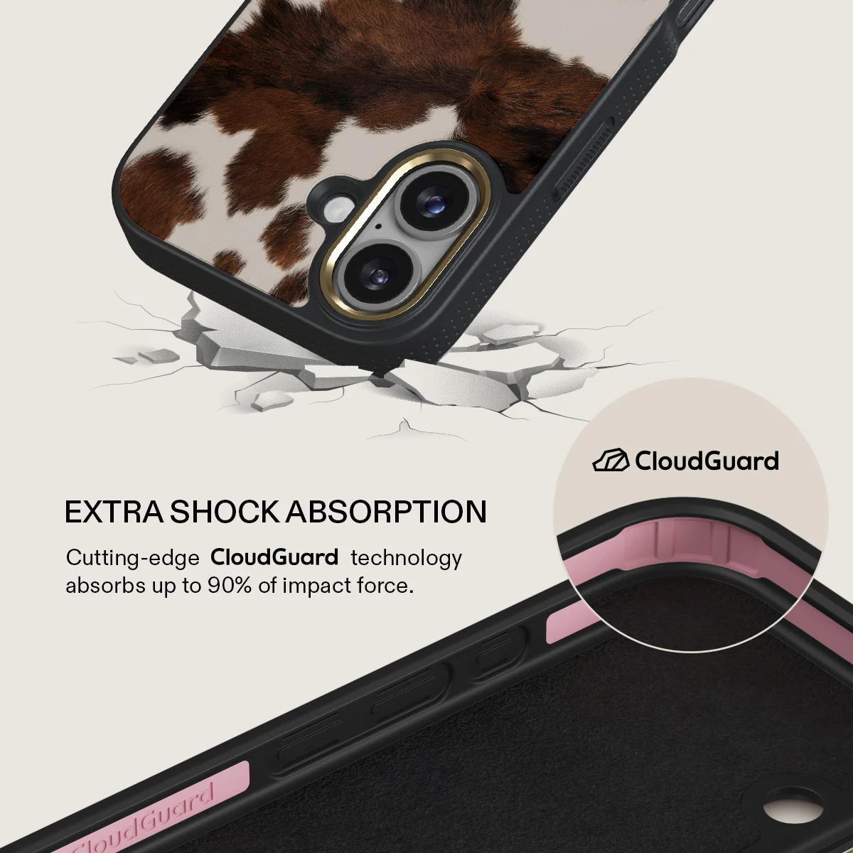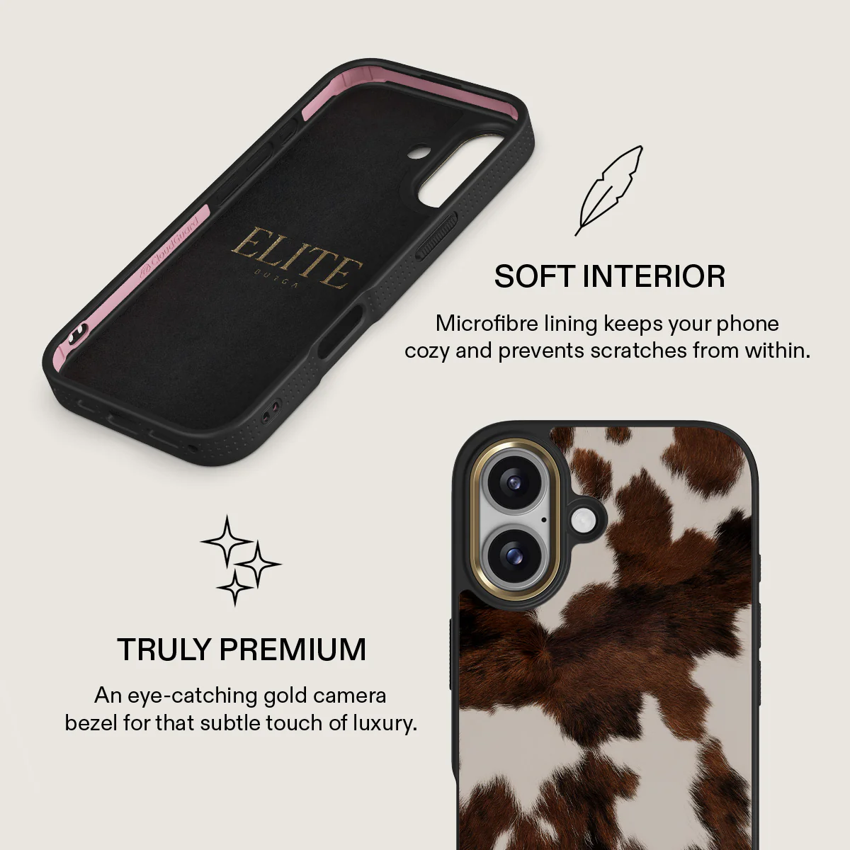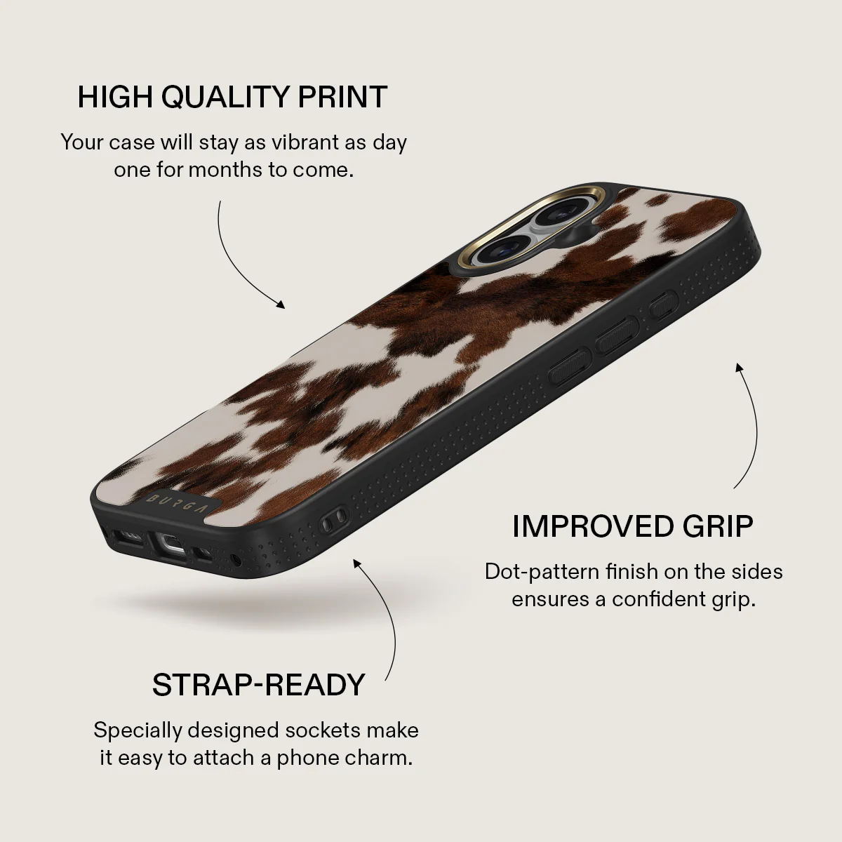 Cute cream color as a background for the unique pattern of asymmetrical black spots creates a real eye-catcher in our iPhone 17 phone case. The spotted pattern adds a touch of luxury to your phone, while the case's hard-shell nature offers much-needed protection making it a popular choice between fashion lovers.